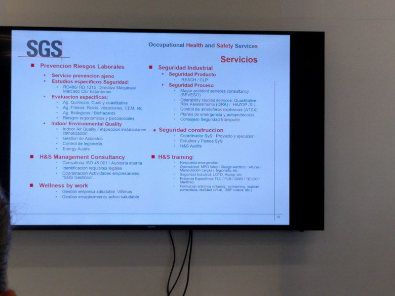 A su vez, José Comino, Director de Prevención de SGS expuso la labor de su compañía y sus importantes esfuertos en pro de la prevención de riesgos.