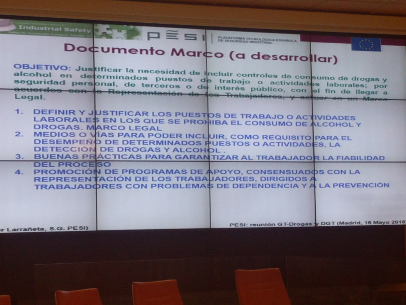 El fin de este grupo es el de determinar unos protocolos estandarizados de actuación en el ámbito del consumo de drogas, especialmente entre los trabajadores de las infraestructuras críticas.